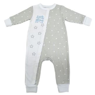Комбинезон-спальник необычного кроя (с кнопками, которые расположены по касательной к середине изделия). Выполнен из сверхмягкого интерлока (100% хлопковое полотно). С нежным принтом из полосок и звездочек. Имеет резинки регулируемой длины на рукавах и штанинах. Подойдет мальчикам от 3 до 18 месяцев. None Можно купить без предварительного заказа.