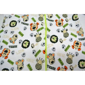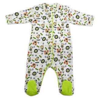 Задорный комбинезон “Сафари” с анималистичным принтом для мальчиков от нуля до девяти месяцев. Основной белый цвет дополнен фисташковым на пятках и с внутренней стороны комбинезона. Для пошива использована ткань типа интерлок из 100% хлопка. Это идеальный выбор для одежды младенцев: такая ткань исключает появление раздражения за счет удивительной мягкости. None