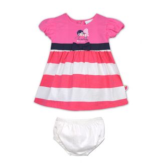 Комплект (платье и трусы) Lebe, состоящий из 100% хлопка. Платье расклешенного фасона, с рукавами-крылышками, украшено пояском с бантом. Декорировано принтом на груди. Сзади застегивается на кнопки. Трусики на эластичной резинке по краям. Прекрасный вариант для повседневной носки. Внимание! Фактический цвет изделия может незначительно отличаться от цвета на фотографии в связи с особенностями цветопередачи различных цифровых устройств. None