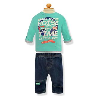 Комплект для мальчика Lebe состоит из джемпера и брюк. Джемпер оформлен подворачивающимися рукавами и декорирован текстовым принтом на груди. Джинсовые брюки на резинке оформлены контрастной отстрочкой швов. Состав: 100% хлопок. Внимание! Фактический цвет изделия может незначительно отличаться от цвета на фотографии в связи с особенностями цветопередачи различных цифровых устройств. None