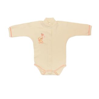 Боди с центральной застежкой на кнопках, с длинными рукавами, воротник стойка. Оригинальность изделию придает вышивка "мишка", декоративная строчка по низу изделия и рукава. Стачные швы налицо None Можно купить без предварительного заказа.