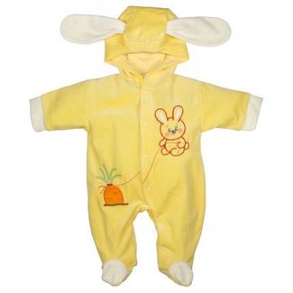 Удобный комбинезон из мягкого велюра. На капюшоне милые заячьи ушки и резинка на лбу, не дающая капюшону сползти. Застежки – кнопки идут по всей длине. Украшен аппликациями с изображением заек. None Можно купить без предварительного заказа.