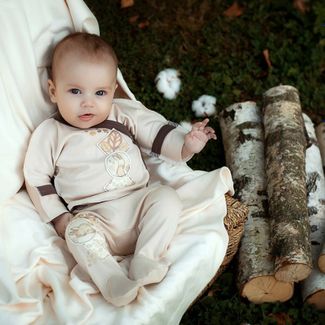 Распашонка с закрытими ручками, с двумя кнопочными застежками. Принт выполнен безопасными водными красками с вышивкой по контуру. Материал: интерлок высшего качества-пенье, 100% органический хлопок. None