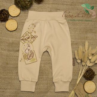 Штанишки с широким поясом и манжетами на ножках. Принт выполнен безопасными водными красками с вышивкой по контуру. Оригинальная коллекция «Зайка» от компании Linea di sette из однотонного органического хлопка цвета какао с яркими акцентами в виде принтов и вышивки. Все изделия тщательно продуманы для того, чтобы гарантировать детям абсолютный комфорт и легко сочетаться между собой. Милый дизайн с веселыми зайчатами подходит как для мальчика так и для девочки. Материал: интерлок высшего качества-пенье, 100% органический хлопок. None