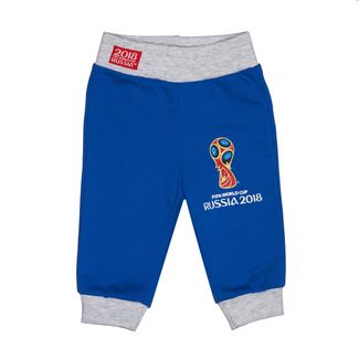 Брюки яркого василькового цвета из высококачественного тёплого футера с символикой Чемпионата мира по футболу FIFA 2018 в России™ созданы для активных и стильных малышей. Контрастные серые резинки на поясе и ножках нежно удерживают брюки, не сдавливая чувствительную кожу. В таких брюках можно не только играть в самые увлекательные игры, но и пойти в гости или детский сад. None Можно купить без предварительного заказа.