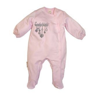 Мягкий хлопковый комбинезон для девочки. Кнопки по всей длине и по ножкам для удобного одевания. Украшен принтом спереди. None Можно купить без предварительного заказа.