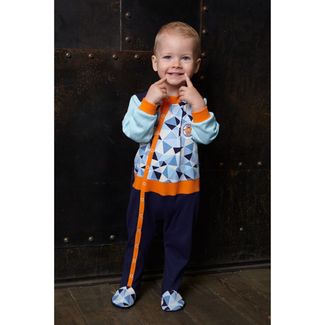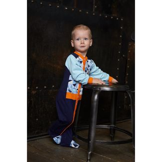 В этом уютном комбинезоне с закрытыми ножками малышу будет тепло и комфортно. Удобная застёжка с боковыми кнопками точно понравится каждой маме, ведь процесс переодевания не будет доставлять неудобства. Комбинезон скроен с учётом анатомических особенностей малыша, поэтому ребёнку в нём будет максимально комфортно — и спать, и играть.Сочетание тёмно-синего, голубого и белого цветов напоминают о смелости, спокойствии и стремлении познавать мир. Оранжевая окантовка по краям и на поясе добавляет в образ яркие акценты. На груди — фирменный шеврон с символами коллекции «Умка». None Можно купить без предварительного заказа.