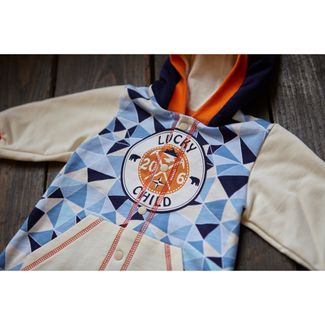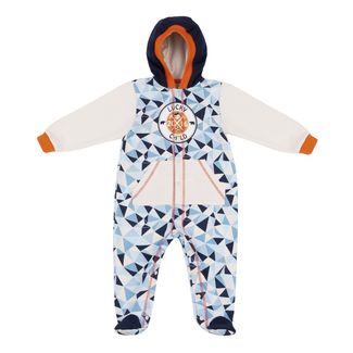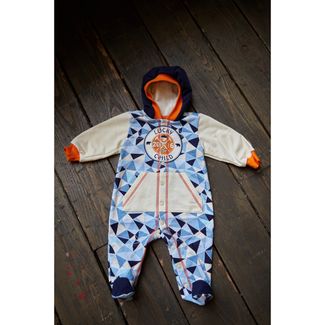 Покорители льдин, даже самые юные, должны одеваться практично и удобно. Почему бы не выбрать утеплённый комбинезон из футера с капюшоном? Вот уж в нём точно можно отправляться хоть куда! Удобная система кнопочек позволит переодеться легко и быстро. Капюшон защитит голову от ветра и холода. Яркий принт будет радовать глаз. Украшением модели является эмблема, на которой изображены символы путешественников: горные вершины, роза ветров, альпенштоки. Необычная деталь — накладные карманы с декоративной пунктирной строчкой. Ярким акцентом являются красные нити вдоль кнопок, они символизируют ледоколы, которые бороздят северные моря. None Можно купить без предварительного заказа.