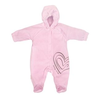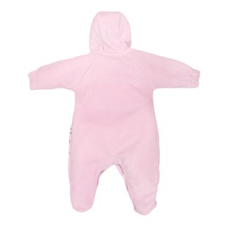 Очаровательный комбинезон из мягкого велюра. На рукавах и на капюшоне мягкие резиночки. Застегивается на кнопки по всей длине и по ножкам для удобного одевания. Спереди украшен принтом. None Можно купить без предварительного заказа.