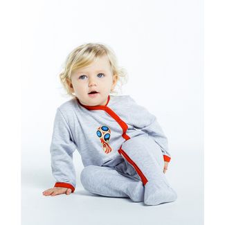 Практичный серый комбинезон с красной окантовкой и ярким принтом имеет все шансы стать самым любимым в гардеробе вашего малыша. Изготовленный из мягкого интерлока, с прочными кнопками, расположенными по всей длине, комбинезон будет радовать вас ещё очень долго, даже после окончания важнейшего футбольного события в нашей стране. None Можно купить без предварительного заказа.