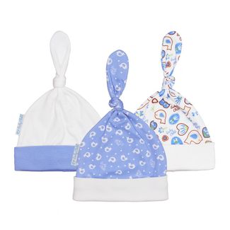 Комплект из трех шапочек с забавным узелком на макушке будет отличным дополнением любого комплекта. А как умилительно смотрятся малыши первых недель жизни в этих милых шапочках – настоящими куколками! В зависимости от настроения или в комбинации с подходящими штанишками и рубашкой можно выбрать белую шапочку с голубой полоской, нежную бело-голубую шапочку с маленькими птичками или молочного цвета шапочку с разноцветными пряничками. None Можно купить без предварительного заказа.