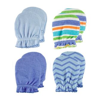 Комплект из четырёх пар рукавичек-антицарапок для новорождённых. Антицарапки согревают ручки малыша, а также предотвращают царапание. Изготовлены из натурального хлопчатобумажного трикотажа. None Можно купить без предварительного заказа.