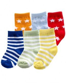 Комплект из 6 пар носочков "Веселые полоски" торговой марки "Luvable Friends". Состав: 69 хлопок, 29 нейлон, 2 спандекс. Минимальная сумма заказа 1500 руб. Возможен самовывоз. Есть доставка.