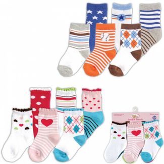 Комплект из 6 пар махровых носочков "Яркий принт" торговой марки "Luvable Friends". Состав: 82 хлопок, 12 полиэстер, 4 нейлон, 2 спандекс. Минимальная сумма заказа 1500 руб. Возможен самовывоз. Есть доставка.