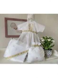 Крестильный набор 4 предмета Makkaroni Kids выполнен из натуральной ткани и идеально подходит для девочек в возрасте 3-6 месяцев. Комплект украшен золотой жаккардовой лентой и крестиком из страз. Наличные, Visa/MasterCard, Яндекс.Деньги, WebMoney Возможен самовывоз. Есть доставка.