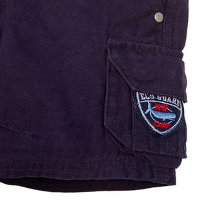 Шорты для мальчика с карманами. Два накладных кармана с клапаном по бокам изделия. Яркая нашивка на кармане сбоку. None Можно купить без предварительного заказа.
