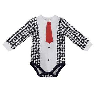 Боди для мальчика из мягкого, комфортного натурального трикотажа. Сохранит цвет после многочисленных стирок, хорошо впитывает влагу, не вызовет аллергии. Украшен красным "галстуком". None