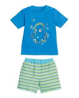 Комплект для мальчика рубашка и шорты Azure Пеликан сделан из мягкого хлопка. Рубашка с принтом осьминожки и кнопками. Шорты на резинке. Минимальная сумма заказа 1500 руб. Возможен самовывоз. Есть доставка.