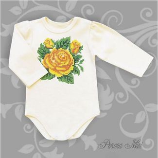 Очень нежное и мягкое боди из трикотажного полотна премиум класса (интерлок пенье). Модель украшена эксклюзивным дизайнерским рисунком в виде розочек вышитых «крестиком», по которым рассыпаны стразы, как капельки росы. None Можно купить без предварительного заказа.