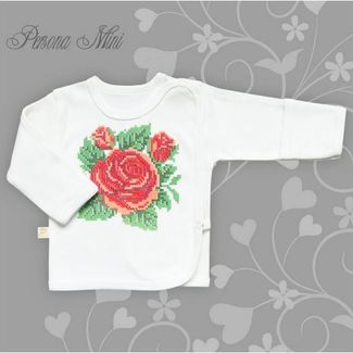 Очень нежная и мягкая распашонка из трикотажного полотна премиум класса (интерлок пенье). Модель украшена эксклюзивным дизайнерским рисунком в виде розочек вышитых «крестиком», по которым рассыпаны стразы, как капельки росы. None