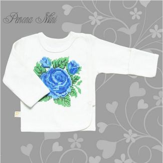 Очень нежная и мягкая распашонка из трикотажного полотна премиум класса (интерлок пенье). Модель украшена эксклюзивным дизайнерским рисунком в виде розочек вышитых «крестиком», по которым рассыпаны стразы, как капельки росы. None