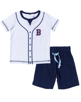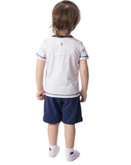 Комплект Play Today включает в себя футболку с коротким рукавом и шорты. Футболка белого цвета с контрастной темно-синей отделкой. Шорты с поясом на резинке и кулиской. Свободный крой комплекта не будет сковывать движений малыша, а значит маленький модник будет чувствовать себя в нем максимально комфортно. Минимальная сумма заказа 1500 руб. Возможен самовывоз. Есть доставка.