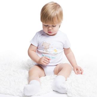 Мягкое хлопковое боди с короткими рукавами. Удобно застегивается на кнопки снизу. На груди мягкий водный принт с медвежонком. None Можно купить без предварительного заказа.