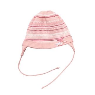 Теплая шапка из вязаного трикотажа на завязках. Ткань в полоску - пестровязанная. Украшена бантиками. None Можно купить без предварительного заказа.