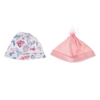 Комплект из двух шапочек для малышки. Нежно-розовый цвет, ткань в набивку с нежными бабочками. Есть отвороты. 100% хлопок. None Можно купить без предварительного заказа.
