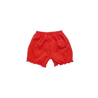 Легкие шорты красного цвета, изготовленные из 100% хлопка. Модель с комфортным поясом, низ брючин оформлен рюшей на резинке. None