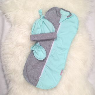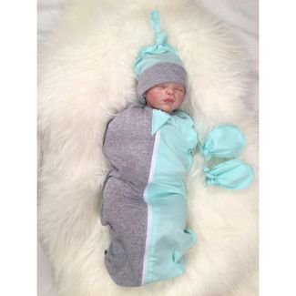 - СуперМаМкет Комплект: кокон "Бирюзовый меланж" + шапочка + антицарапки plml-01013 бирюза в каталоге Другая одежда для новорожденных в России;