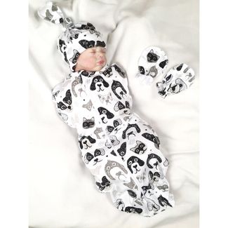 - СуперМаМкет Комплект: кокон для пеленания "Собачки" + шапочка + антицарапки plml-id0113 собачки в каталоге Другая одежда для новорожденных в России;