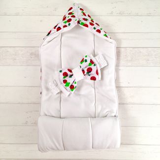 Конверт JustCute закрывается на 2 молнии, расположенные слева и справа. Кнопки держат отворот конверта, но, при желании, вы можете поднять отворот, чтобы было видно только личико ребенка и он был максимально закрыт от непогоды. Молния на капюшоне расстегивается, поэтому, когда малыш подрастет, можно будет расстегнуть молнию и дальше использовать конверт для прогулок.Сезон: Лето.Размер: 38*68см. Рекомендуется для возраста ребенка от 0 до 4мес.Состав: ткань верха – плотный хлопок, внутри утеплитель Синтепон 150, подкладка - хлопок.Летние конверты используются от +20 до +5 градусов.Примечание: зимний конверт сделан по размерам больше демисезонных и летних конвертов для того, чтобы оставалась возможность дополнительно утеплить ребенка по усмотрению родителей, напр. укутать в байковое одеялко, утепленный комбинезон. Осенние и летние конверты имеют меньшие размеры, благодаря чему ребенок будет чувствовать себя более уютно.Внимание! Внешний вид может немного отличаться от указанного на фото. None