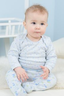 - Веселый малыш боди и ползунки Аистенок голубые в каталоге Другая одежда для новорожденных в России;