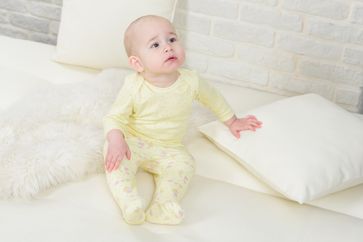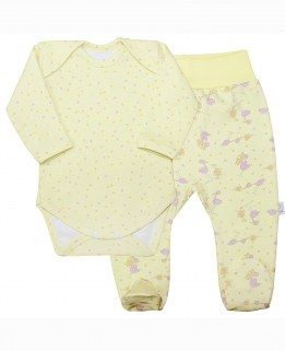 - Веселый малыш боди и ползунки Аистенок желтые по выгодной цене 353 р. руб.;