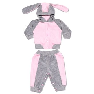 Костюм "Кроха" состоит из двух предметов: кофты на кнопках с капюшоном и штанишек. На штанишках в 62, 68 и 74 размерах кнопки между ножек, в 80 размере кнопок между ног нет. Капюшон кофты украшают заячьи ушки. Низ кофты, рукава и передний срез капюшона обработаны рибаной. Верхний срез и нижний срез штанишек также обработаны эластичной рибаной. Довольно плотный, но очень мягкий и приятный костюмчик непременно оценят и малыши, и мамочки. None
