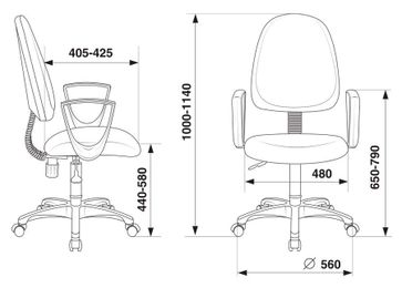 Характеристики: <br> Материал обивки сиденья и спинки: ткань / искусственная кожа.<br> Материал крестовины и подлокотников: пластик.<br> Материал колес: пластик.<br> Материал основы сиденья: гнутоклееная фанера толщиной 7 мм.<br> Механизм качания: пружинно-винтовой без фиксации.<br> Механизм регулировки высоты: газлифт.<br> Регулируемая высота сиденья от пола: 440-580 мм.<br> Регулируемая глубина сиденья: 405-425 мм.<br> Ширина сиденья: 480 мм.<br> Максимальная нагрузка: 120 кг.<br> None Страна производства: Россия