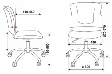 <br> Крестовина изделия хромированная. Обивка — ткань. Глубина сиденья регулируется за счет перемещения спинки вместе с опорой назад-вперед с помощью «барашка». Высота модели корректируется благодаря газлифту.<br> Диапазон глубины сиденья: 410-460 мм.<br /> Диапазон высоты от пола до сиденья: 450-550 мм.<br /> Диаметр крестовины 600 мм. None Страна производства: Россия