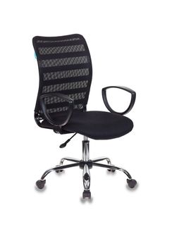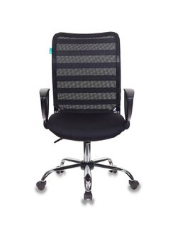 Обивка сиденья выполнена из ткани, спинки из сетчатого материала. Подлокотники пластиковые, крестовина хромированная. Высота сиденья регулируется за счет механизма «газ-лифт».<br>