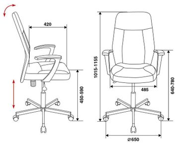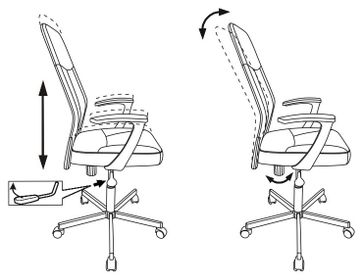 Характеристики: <br>Материал крестовины: металл.<br> Материал подлокотников: пластик.<br> Материал обивки: искусственная кожа.<br> Регулируемая высота сиденья: 450-590 мм.<br> Механизм регулировки высоты: газлифт.<br> Механизм качания: пружинно-винтовой.<br> Максимальная нагрузка: 120 кг.<br> None Страна производства: Россия