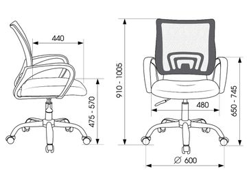 Характеристики: <br> Материал крестовины: хромированный металл.<br> Диаметр крестовины: 600 мм.<br> Материал подлокотников и колес: пластик.<br> Диаметр колес: 50 мм.<br> Механизм регулировки высоты: газлифт.<br> Регулируемая высота сиденья: 475-570 мм.<br> Габариты сиденья (ШхГ): 480 х 440 мм.<br> Максимальная нагрузка: 120 кг.<br> None Страна производства: Россия
