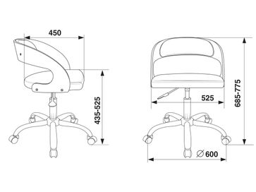 Характеристики: <br> Материал крестовины: сталь.<br> Материал обивки: экокожа.<br> Материал колес: пластик.<br> Регулируемая высота сиденья: 435-525 мм.<br> Механизм регулировки высоты: газлифт.<br> Глубина сиденья: 450 мм.<br> Максимальная нагрузка: 120 кг.<br> None Страна производства: Россия