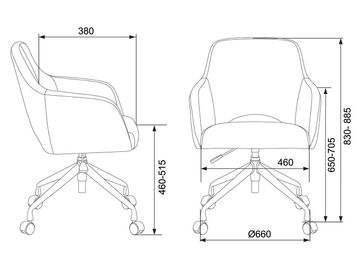 Характеристики: <br> Материал крестовины: сталь.<br> Материал подлокотников: сталь, ткань.<br> Материал обивки: ткань.<br> Материал колес: пластик.<br> Регулируемая высота сиденья: 460-515 мм.<br> Механизм регулировки высоты: газлифт.<br> Высота подлокотников: 190 мм.<br> Глубина сиденья: 380 мм.<br> Максимальная нагрузка: 100 кг.<br> None Страна производства: Россия