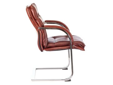 Офисное кресло Лакри добавит статусный штрих интерьеру рабочего или домашнего кабинета. Устойчивый каркас на полозьях из хромированного металла гармонично сочетается с эргономичным сиденьем.<br /> Лицевая обивка выполнена из невероятно приятной на ощупь натуральной кожи. Дополнительный комфорт обеспечивают удобные подлокотники с мягкими накладками и скошенный край сиденья.<br>