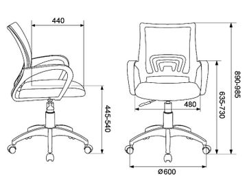 Характеристики: <br> Материал крестовины, подлокотников и колес: пластик.<br> Диаметр крестовины: 600 мм.<br> Материал обивки сиденья: ткань.<br> Материал обивки спинки: сетчатая ткань.<br> Диаметр колес: 50 мм.<br> Механизм регулировки высоты: газлифт.<br> Регулируемая высота сиденья: 445-540 мм.<br> Габариты сиденья (ШхГ): 480 х 440 мм.<br> Максимальная нагрузка: 120 кг.<br> None Страна производства: Россия