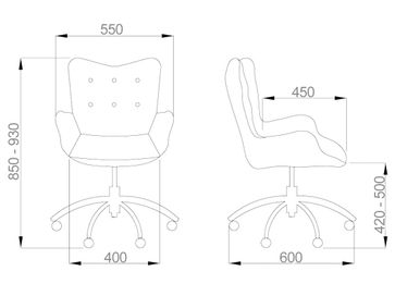 Характеристики: <br> Материал крестовины: хромированный металл.<br> Диаметр крестовины: 600 мм.<br> Материал подлокотников: мягкие.<br> Материал колес: полиуретан.<br> Механизм регулировки высоты: газлифт.<br> Регулируемая высота сиденья: 420-500 мм.<br> Габариты сиденья (ШхГ): 400 х 450 мм.<br> Максимальная нагрузка: 120 кг.<br> None Страна производства: Китай