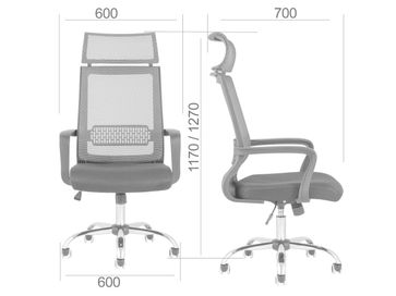 Характеристики: <br> Материал крестовины: хромированный металл.<br> Диаметр крестовины: 600 мм.<br> Материал подлокотников и колес: пластик.<br> Механизм регулировки высоты: газлифт.<br> Механизм качания: с фиксацией в вертикальном положении.<br> Регулируемая высота сиденья: 450-550 мм.<br> Максимальная нагрузка: 120 кг.<br> None Страна производства: Китай