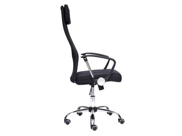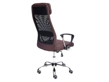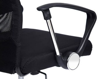 Характеристики: <br>Материал крестовины: хромированный металл.<br> Материал подлокотников: пластик с металлическими элементами.<br> Материал обивки: ткань, сетчатая ткань.<br> Материал колес: полиуретан (прорезиненные).<br> Регулируемая высота кресла: 1115-1230 мм.<br> Механизм регулировки высоты: газ-лифт.<br> Механизм качания: с фиксацией в вертикальном положении.<br> Максимальная нагрузка: 120 кг.<br> Высота спинки: 720 мм.<br> Высота сиденья от пола: 480-560 мм.<br> Размер сиденья (ШхГ): 480 х 490 мм.<br> Диаметр крестовины: 590 мм.<br> <br> None Страна производства: Китай
