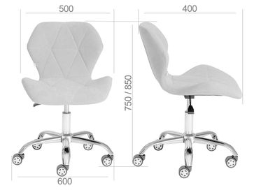 Характеристики: <br> Материал крестовины: хромированный металл.<br> Диаметр крестовины: 600 мм.<br> Материал колес: полиуретан.<br> Диаметр колес: 55 мм.<br> Механизм регулировки высоты: газлифт.<br> Регулируемая высота сиденья: 430-530 мм.<br> Габариты сиденья (ШхГ): 500 х 400 мм.<br> Максимальная нагрузка: 100 кг.<br> None Страна производства: Россия