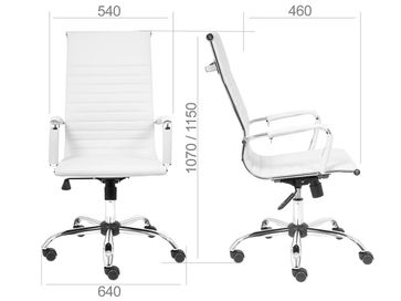Характеристики: <br> Материал крестовины: хромированный металл.<br> Диаметр крестовины: 640 мм.<br> Материал подлокотников: металл с мягкими накладками.<br> Материал колес: полиуретан.<br> Механизм регулировки высоты: газлифт.<br> Механизм качания: с фиксацией в вертикальном положении.<br> Регулируемая высота сиденья: 460-540 мм.<br> Габариты сиденья (ШхГ): 450 х 460 мм.<br> Максимальная нагрузка: 120 кг.<br> None Страна производства: Россия